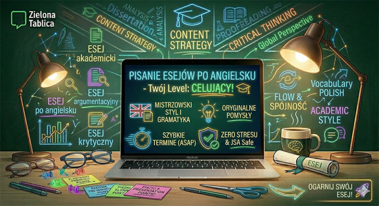 Niezależnie, czy to esej zaliczeniowy z socjologii, praca semestralna z ekonomii, czy po prostu masz dosyć pisania na lektoratach – Zielona Tablica ma to w małym palcu. 🚀 Zrzucasz stres, a dostajesz profesjonalny tekst. Wierzymy, że życie studenckie to nie tylko biblioteka. Skup się na tym, co dla Ciebie ważne (praca, imprezy, or sleep! 😴), a my dostarczymy Ci tekst, którym będziesz mógł się chwalić. Twoje zaliczenie jest bezpieczne.